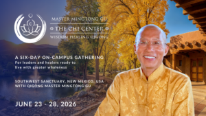 Students learn and practice one of the most effective energy healing practices and systems of human science – Wisdom Healing (Zhineng) Qigong. Master Mingtong may lead any of the basic to the advanced practice including Lift Chi Up Pour Chi Down Method (LCUPCD), Standing Meditation, Spinal Bone Marrow Method, Body Mind Method, Wall Squats, Inner Alchemy of Emotional Transformation, Transforming Jing Method, Nine Palaces Method, and other advanced methods. The practice will be a sustainable practice of healing as well as a life transformation. Wisdom Healing Qigong practices represent a radically different technology offered to awaken, transform, and integrate your entire chi body — from the cellular to the spiritual — returning us to our natural, healthy, balanced state of being. This technology re-patterns the physical, emotional and mental/spiritual energy that is not flowing freely, that is experienced as pain and suffering, into energy that is flowing freely, bringing forth natural states of happiness, compassion, openness, and wholeness.